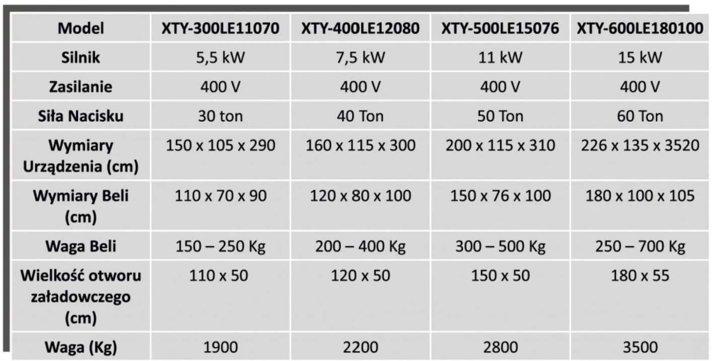 DOSTĘPNE SĄ 4 MODELE BELOWNIC TYPU XT - CENA DOTYCZY MODELU XTY300LE11070