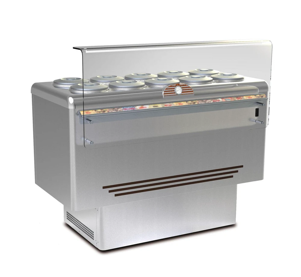 Przeznaczony dla zakładów lodziarskich produkujących wyroby w oparciu o tradycyjne receptury. To idealne urządzenie do ekspozycji lodów w lodziarniach, cukierniach oraz lokalach gastronomicznych.