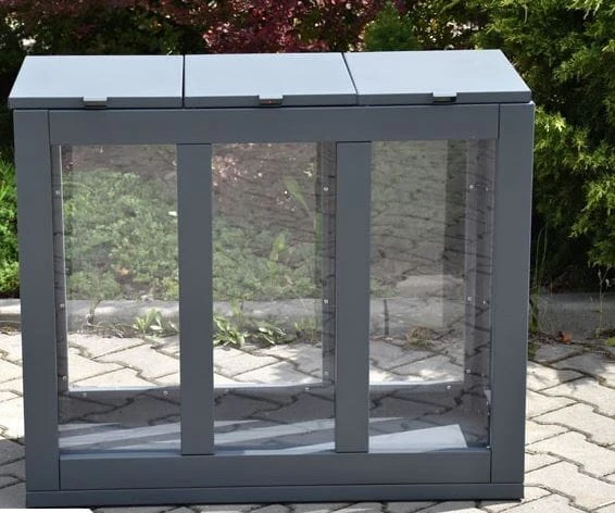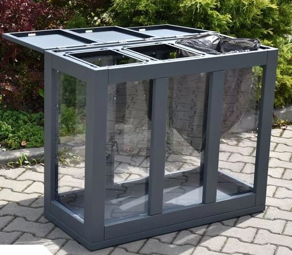 Kosz do segregacji odpadów Satis III 60 L, składa się z 3 pojemników do segregacji odpadów. Wykonany z blachy 1 mm i poliwęglanu litego 5mm, który tworzy front kosza.
