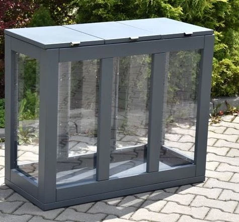 Kosz do segregacji Satis III 3x60 l, przezroczysty, antyterrorystyczny, stal ocynkowana malowana