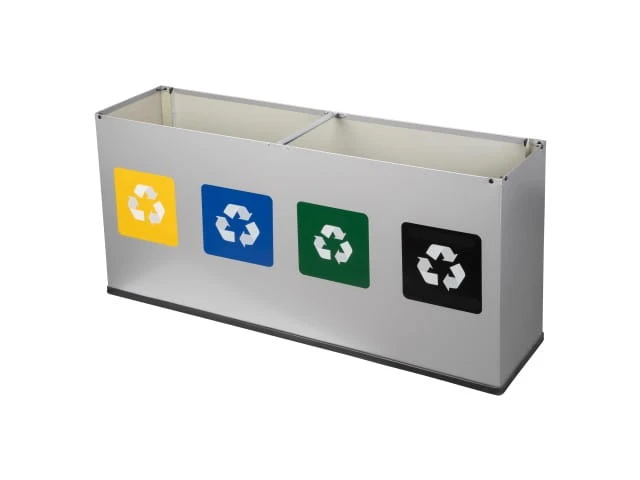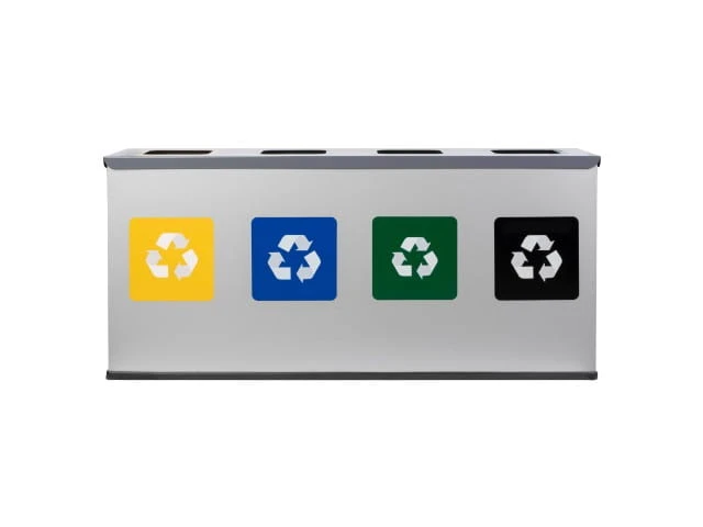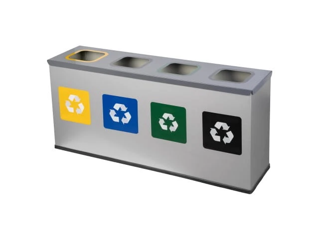 Kosz do segregacji na papier, plastik, odpady zmieszane i szkło, 4x12 litrów.