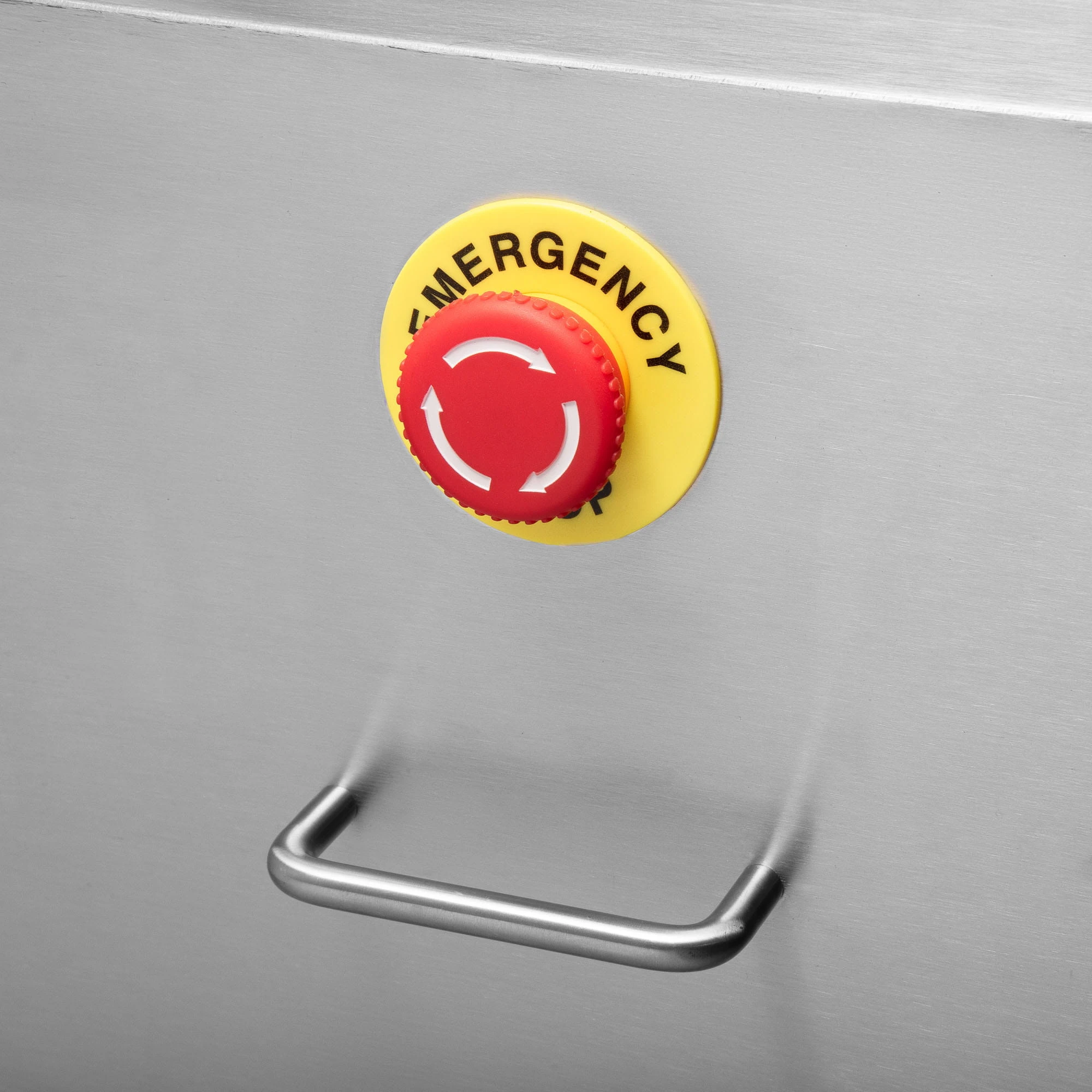 - przycisk zatrzymujący pracę maszyny oraz osłonę górną i przednią