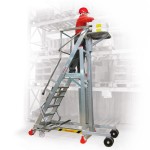 To mobilna platforma z systemem SICUR STOP, który umożliwia przesuwanie platformy na kółkach w czasie pracy.