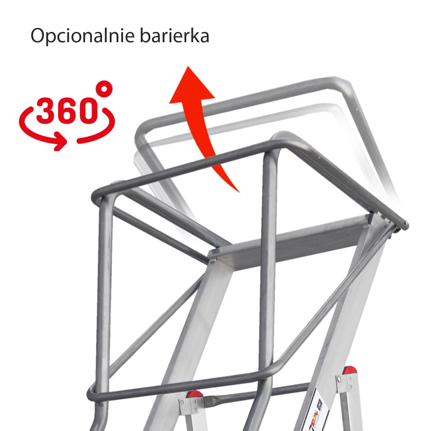 - podłużnice drabiny wykonane z wytrzymałych profili aluminiowych, przód podestu o przekroju 100x100 mm, tył 80x25 mm