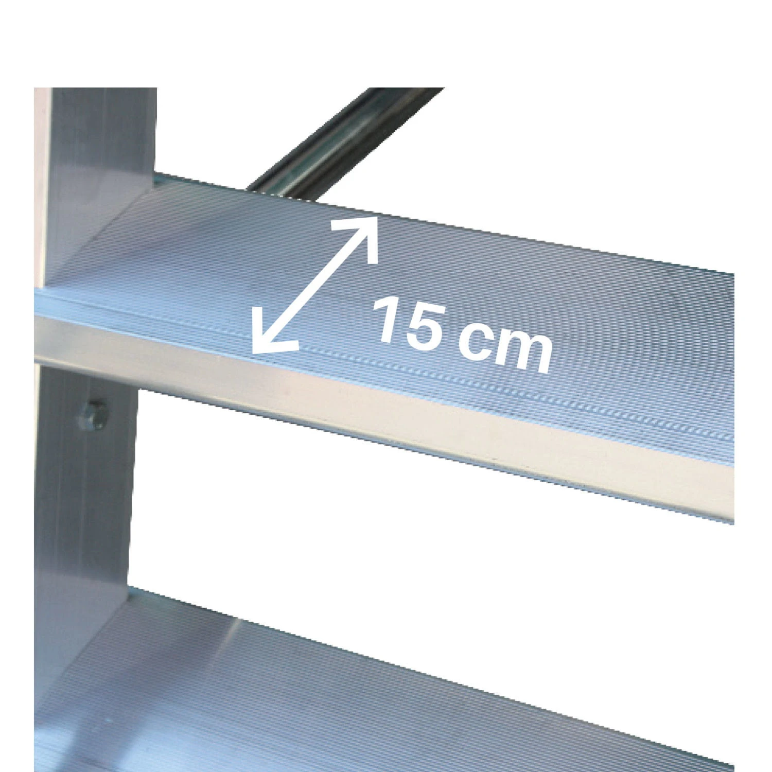 - podłużnice drabiny wykonane z wytrzymałych profili aluminiowych, przód podestu o przekroju 100x100 mm, tył 80x25 mm