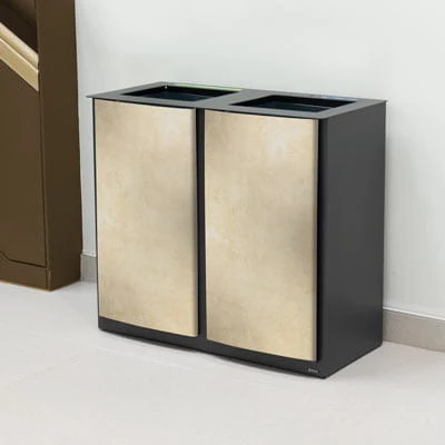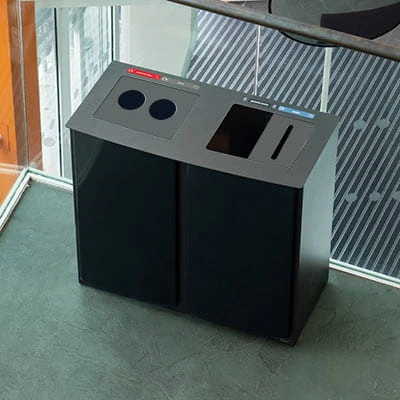 Kosz wykonany jest ze stali z powłoką Armortec i aluminiowego profilu drzwi Vandalex™. Stalowa rama pokryta Armortec i panele korpusu w 100% nadają się do recyklingu.