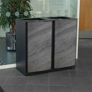 Kosz wykonany jest ze stali z powłoką Armortec i aluminiowego profilu drzwi Vandalex™. Stalowa rama pokryta Armortec i panele korpusu w 100% nadają się do recyklingu.