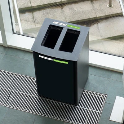 Nexus Style 85 Duo to pojemnik składający się z dwóch komór aby umożliwić zbieranie dwóch strumieni odpadów w jednym pojemniku zajmującym niewiele miejsca.