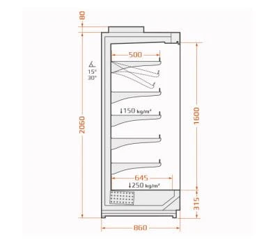 Parametry techniczne regału chłodniczego RCH Hercules 86.206 1,875 Q: