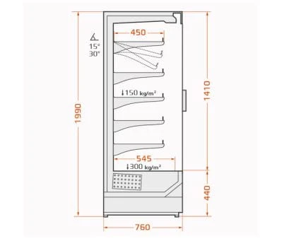 Parametry techniczne regału chłodniczego RCS Scorpion 76.199 1,875 D Q: