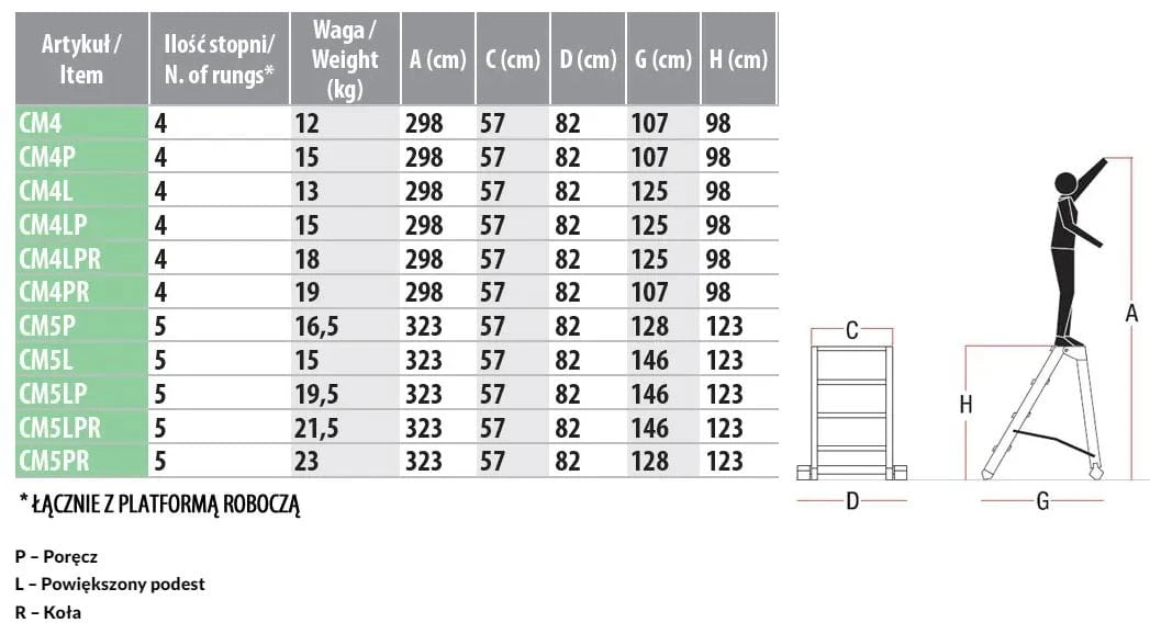 - ilość stopni: 5 łącznie z platformą roboczą