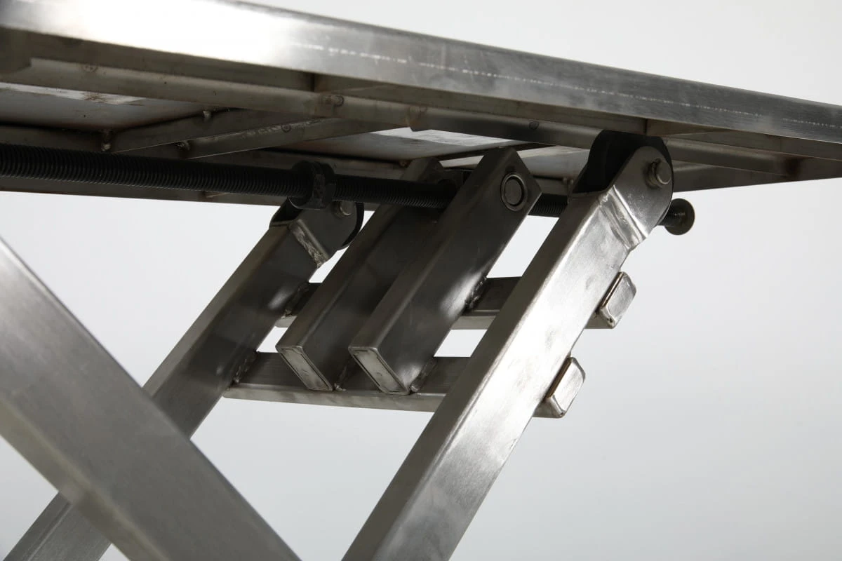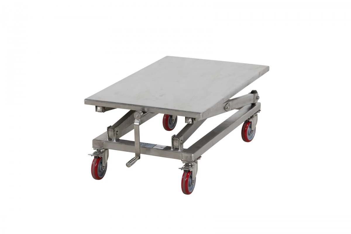 Stół podnośny regulowany korbą MLT300 ze stali nierdzewnej, nośność 300 kg.