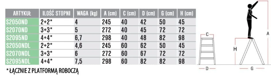 Parametry techniczne stołka aluminiowego dwustronnego S2070ND: