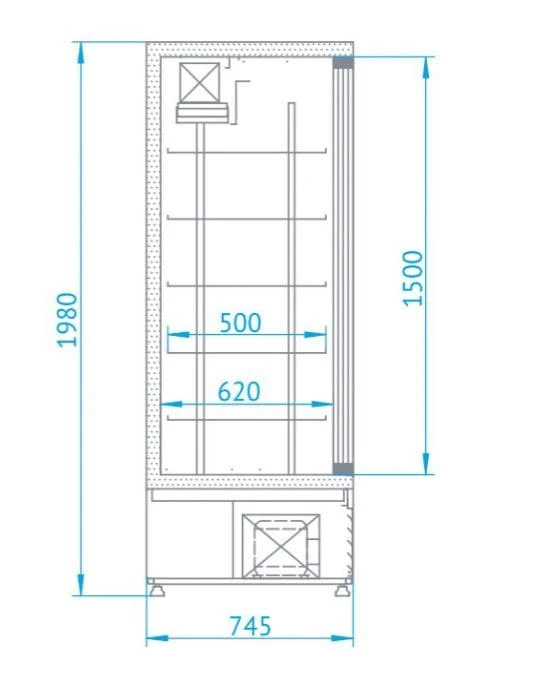 Szafa chłodnicza przeszklona, drzwi rozsuwane SCh-SR 1200 z agregatem wewnętrznym i chłodzeniem grawitacyjnym.
