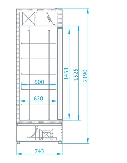Szafa chłodnicza przeszklona, drzwi rozsuwane SCh-SR 1600/WH z agregatem wewnętrznym i chłodzeniem dynamicznym.
