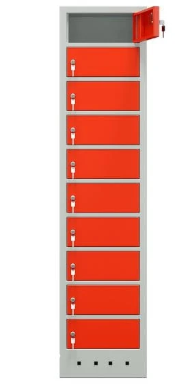 Szafka na laptopy ma budową kolumnową; w kolumnie znajdują się półki, z których każda stanowi odrębną skrytkę/schowek. Skrytka zamykana jest na zamek – także w systemie klucza master i cechuje się ryglowaniem 1-punktowym.