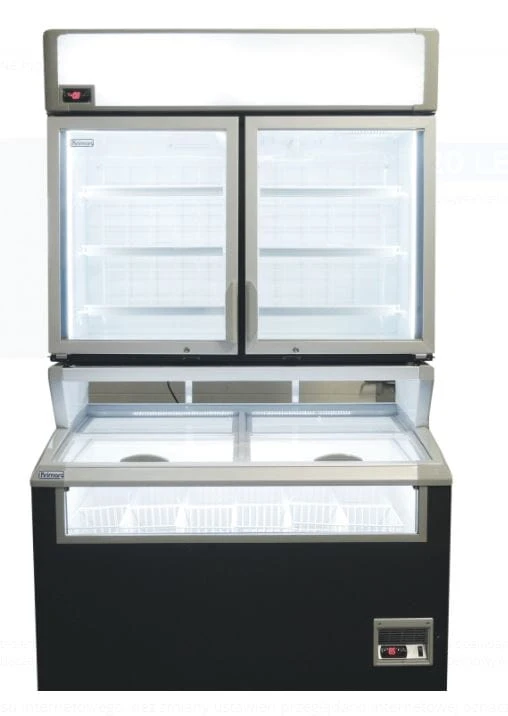 Zamrażarka fabrycznie nowa. Składa się z zamrażarki o pojemności 420 litrów oraz nadstawki mroźniczej o pojemności 320 litrów.