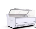 Witryna chłodnicza Izi, wersja z agregatem wewnętrznym i obiegiem wymuszonym. W wyposażeniu przysłonki nocne.