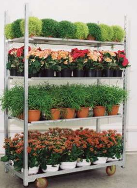 Wózek ekspozycyjno - transportowy, tzw."duński" na kwiaty z 4 poziomami, nowy.