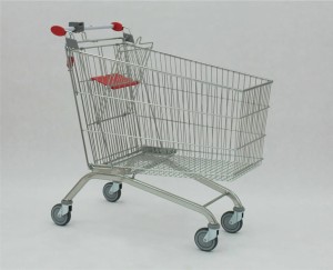 Wózek sklepowy z siedziskiem dla dziecka, o pojemności 240 litrów. Idealny dla sklepów 200-400 mkw.