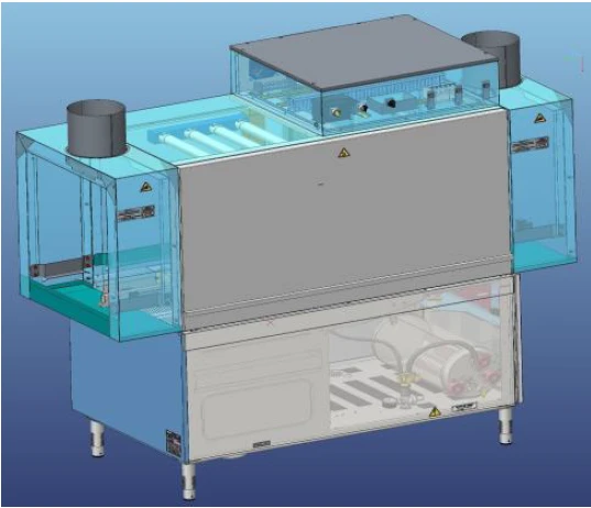 Profesjonalna zmywarka tunelowa koszowa o wysokiej wydajności, niskim zużyciu wody i energii.