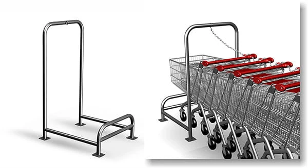 Boks na wózki wykonany ze stali nierdzewnej, przykręcany do podłoża na śruby, przeznaczony na jeden rząd wózków.