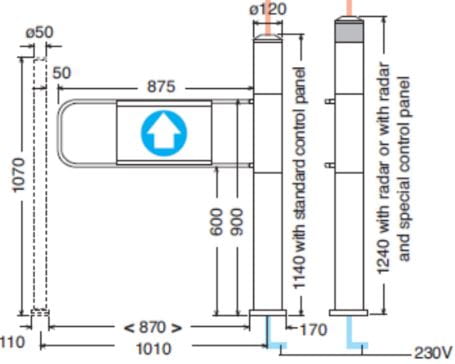 Otwieranie bramki następuje automatycznie po zbliżeniu się do niej. Zamknięcie bramki następuje po czasie ustawiony w panelu sterującym (1-16 sekund).