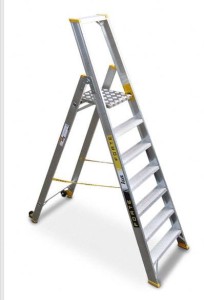 Drabina aluminiowa, rozstawna, podest, 6 stopni