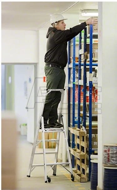 Drabiny aluminiowe Forte są powszechnie stosowane w codziennej pracy w magazynach, halach produkcyjnych, warsztatach czy archiwach i umożliwiają sięganie na wyższe półki regałów.