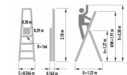 Charakterystyka drabiny rozstawnej z 6 stopniami: