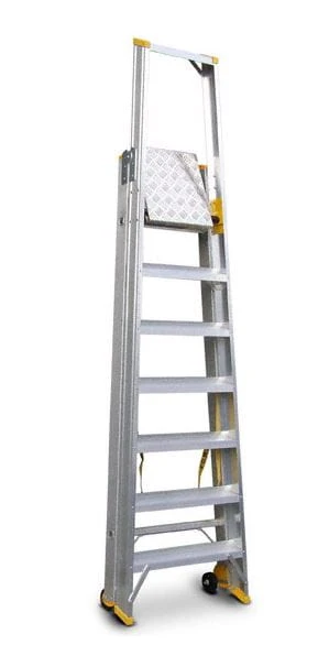 Drabina aluminiowa, rozstawna, podest, 9 stopni