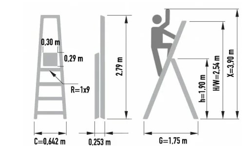 Charakterystyka drabiny rozstawnej z 9 stopniami: