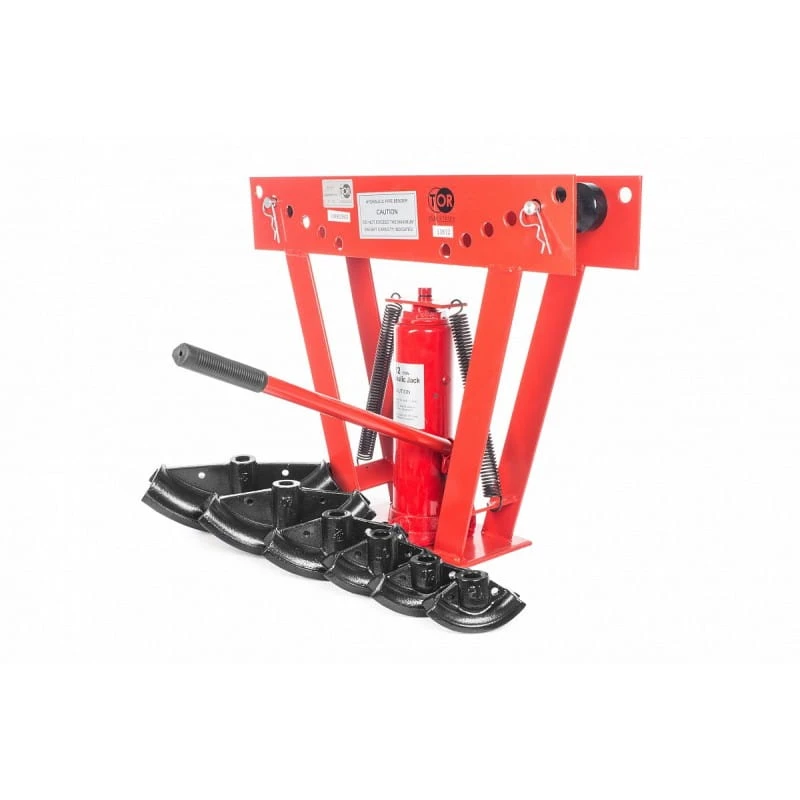Profesjonalna, hydrauliczna giętarka do rur wolno stojąca wyposażona jest w siłownik o sile nacisku 12 ton. Giętarka oferowana jest wraz z zestawem kamieni umożliwiających wyginanie rur i kształtowników.