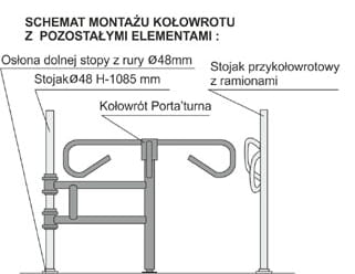 Chromowany kołowrót Porta'Turna w połączeniu ze stojakiem przykołowrotowym, tworzy idealne połączenie mające zastosowanie w strefie wejścia do pomieszczeń publicznych oraz wszelkiego rodzaju lokali i stoisk handlowych. Zapewnia uporządkowany ruch osób.