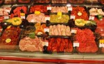 Gotowa propozycja rozmieszczenia czarnych, wykonanych z poliwęglanu pojemników GN do prezentacji mięsa i drobiu w ladzie mięsno - wędliniarskiej (długość całej lady 4-5 mb).