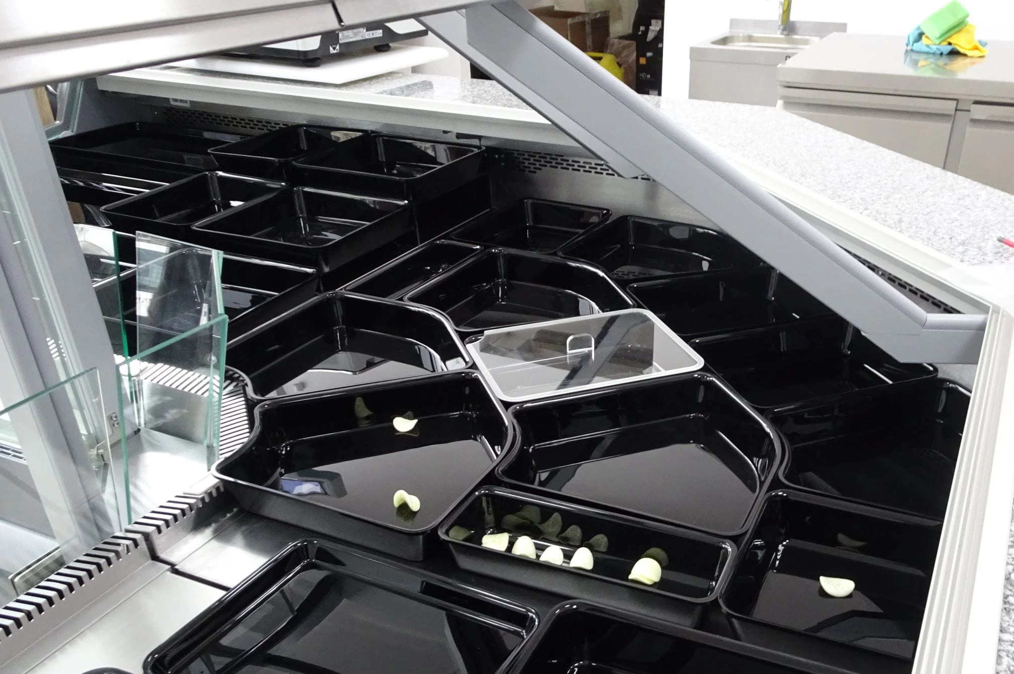 Producent formulaKomplet czarnych pojemników do prezentacji ryb i sałatek w ladzie chłodniczej, dł. prezentacji 100 cm