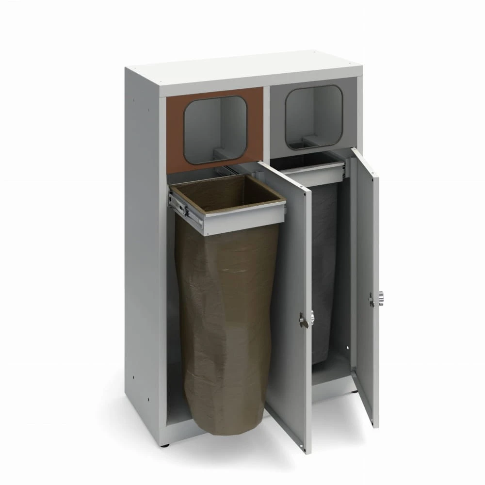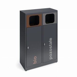 Kosz ANT do segregacji odpadów 2-komorowy ze stali ocynkowanej i malowanej proszkowo, na worki.