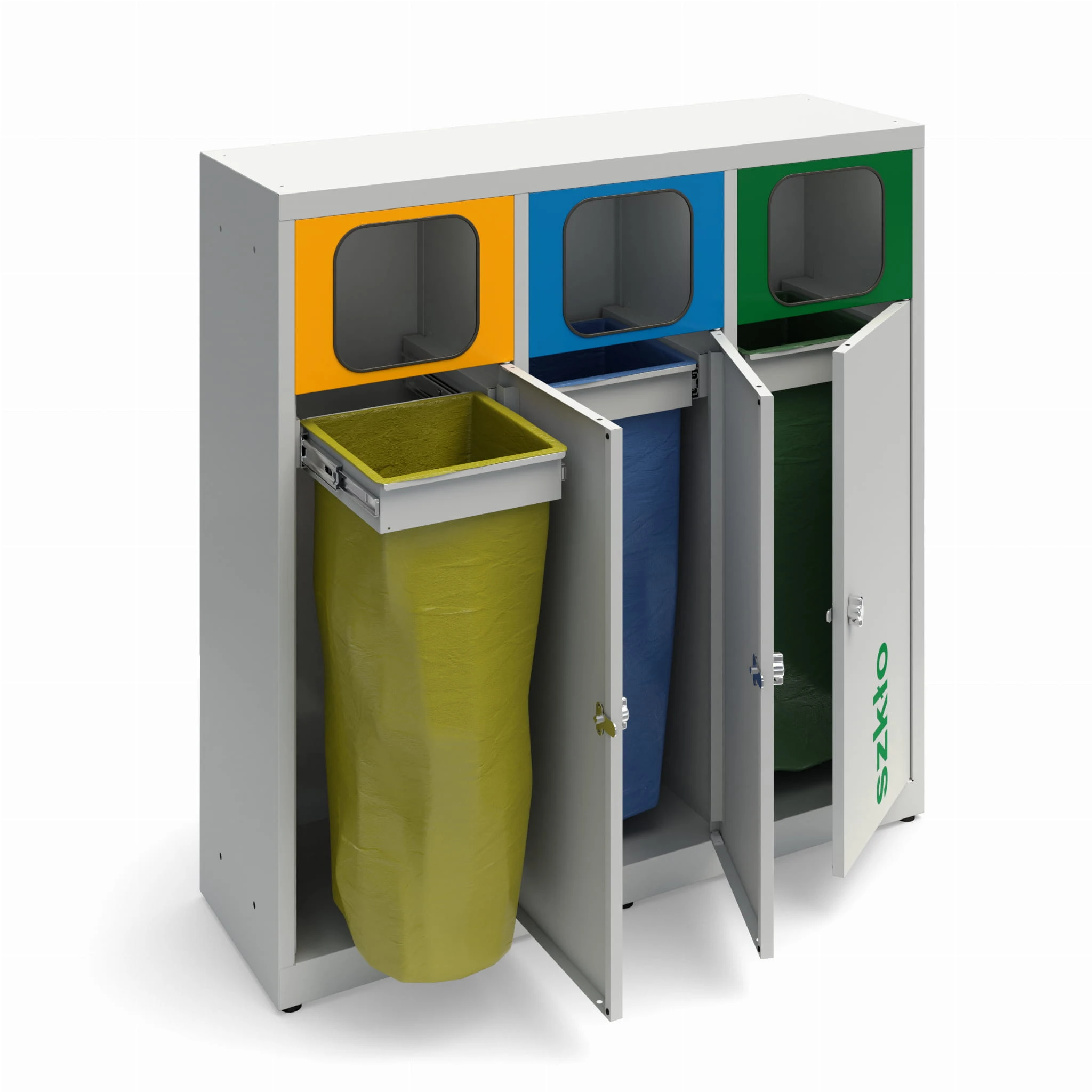 Kosz ANT do segregacji odpadów 3-komorowy ze stali malowanej proszkowo, na worki.