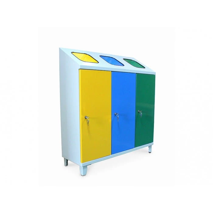 Kosz BIN do segregacji odpadów 3-komorowy z 2 ramkami na worek i 1 pojemnikiem metalowym.