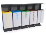 Kosz do segregacji odpadów Heros V 5x80 l wykonany z blachy 1,0 mm i 3 mm. Standardowo dostępny w kolorze RAL 7021 i RAL 9006.