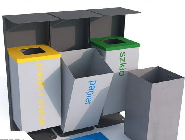 - kolor - RAL 7021 + RAL 9006, nazwy frakcji - wg kolorystyki przyjętego systemu do segregacji odpadów.
