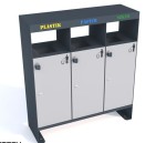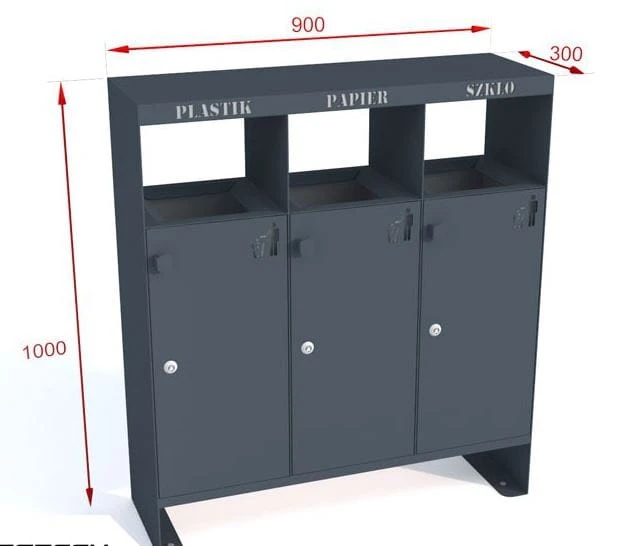 Kosz do segregacji odpadów Aster III składa się z 3 pojemników do segregacji odpadów - każdy wsad o pojemności 40 l. Kolorystyka poszczególnych pojemników dobrana jest wg standardów wspólnego systemu określonych przez Ministerstwo Środowiska.