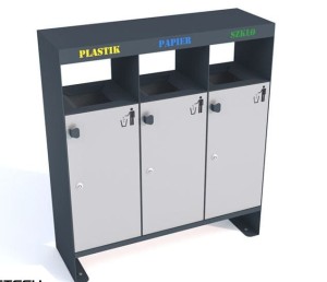 Kosz do segregacji odpadów Aster III 3X40l, stal ocynkowana malowana, napisy wycinka laserowa
