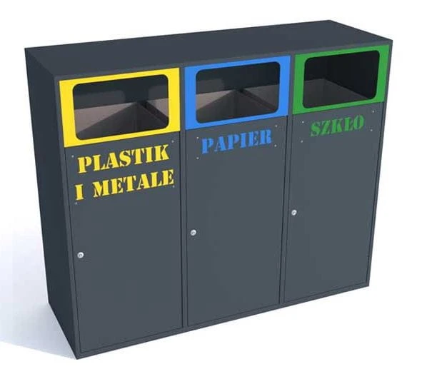 Kosz do segregacji odpadów Etna III 240 L, składa się z 3 pojemników do segregacji odpadów. Wykonany z blachy 1,0 mm.
