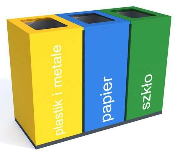 Kosz do segregacji odpadów Satis III 100 L, składa się z 3 pojemników do segregacji odpadów. Wykonany z blachy 1 mm.