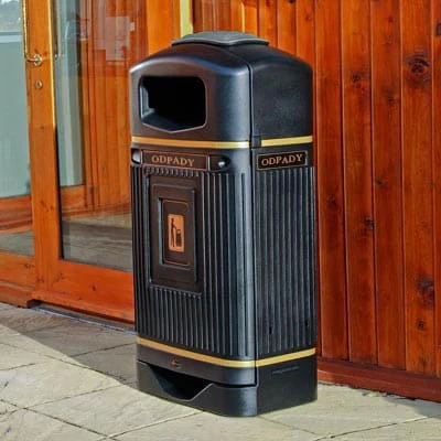 Wyposażenie standardowe zawiera stalowy lub polietylenowy pojemnik wewnętrzny, dekoracyjne paski, znaki graficzne oraz napisy ODPADY. Płytka do gaszenia papierosów umieszczona na kołpaku.