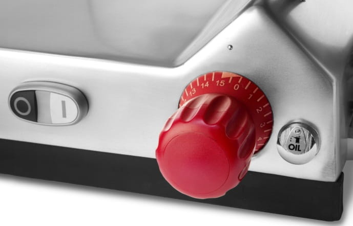 Krajalnica Inoxxi R300 to model ręczny z nożem pochylonym o średnicy noża 300 mm. Przeznaczona do użytku w supermarketach, sklepach i cateringu.