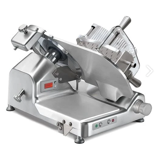 Krajalnica grawitacyjna do wędlin i serów, półautomatyczna z wbudowaną wagą, nóż Ø 370 mm
