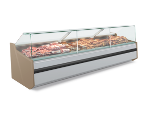 Lada chłodnicza LUZON DEEP, wersja z agregatem wewnętrznym, lampa ze świetlówką LED (barwa do wyboru: biała, cukiernicza lub mięsna „deep pink”).