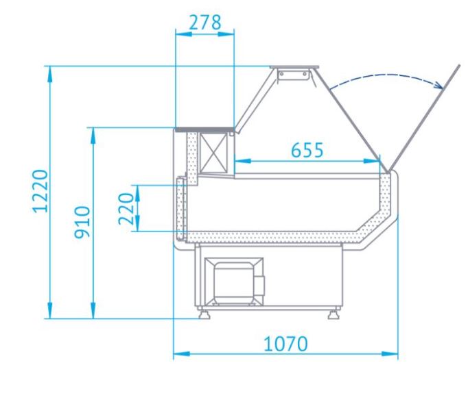 Lada chłodnicza RAPA L-A, 122/107, z szybą prostą, ukośną